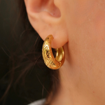 The Bloom Earrings are all-around embossed with delicate flowers, each one symbolizing the journey of self-love, healing, and becoming. Like a flower, you bloom at your own pace — unfolding layer by layer into the person you were always meant to be.